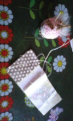 Pinksさんで買ったハギレと、こつこつと集めてるチャームコレクションの中から